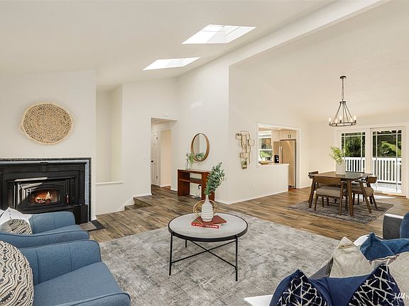 Welcome home to this beautiful move-in-ready 3 bedroom, 3 bath home in Bothell! The living room boasts vaulted ceilings, skylights, a cozy fireplace, and large windows bringing in tons of natural light. Gourmet kitchen with new stainless steel appliances and breakfast bar, just off your dining room with a slider door to the back deck and yard. Primary bedroom has a ¾ bath and wonderful walk in closet with organizers. Lower level features a great room with a second fireplace, ¾ bath, and a spacious laundry room. New lighting and interior paint. 2 car garage with long driveway. Minutes to I-5 & 405. Northshore School District.