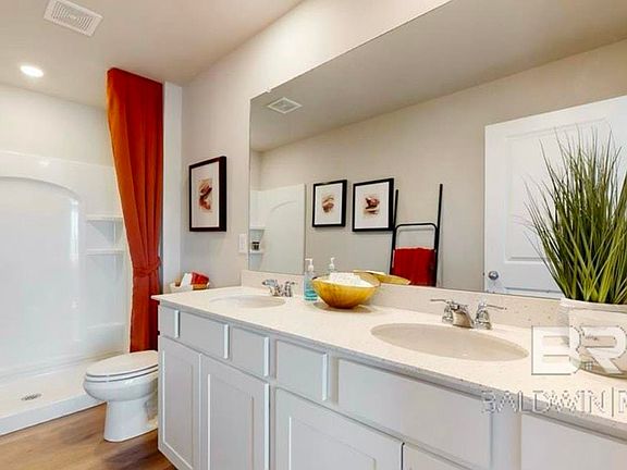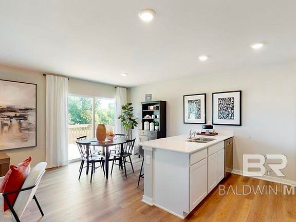 Welcome to the Aldridge plan, a new home in our vibrant Roberts Cove community in Foley. Enjoy both sunrises and sunsets from your covered back porch in this south-facing home. This home features a welcoming front-entry, 2-car garage. Inside this 3-bedroom, 2-bathroom home, you’ll enjoy 1,272 square feet of comfortable living space. The home features 9' celings, vinyl plank flooring, LED lighting, granite or quartz countertops, and stainless-steel appliances. As you enter into the foyer the primary bedroom and attached bathroom is located to one side and further down the hall is the laundry room. Next, you’ll enter the open-concept area, with a spacious dining area and a kitchen on one side and a living space on the other. Past the living room area is a hall with two other bedrooms and a full bathroom. The primary bedroom boasts an attached bathroom with a walk-in closet, providing ample space for your morning routine. The double vanity ensures you won’t have to share a sink. Roberts Cove has an amazing amenity center with zero-entry pool and fitness center. The Smart Home Connect Technology System includes your video doorbell, keyless entry door lock, programmable thermostat, a touchscreen control device, a smart light switch, and more. Homes include a one-year builder warranty and a 10-year structural warranty. These homes are built to Gold FORTIFIED HomeTM certification, which may save the buyer on their homeowner’s insurance (See Sales Representative for details). Pictures are of similar home and not necessarily of subject property, including interior and exterior colors, options, and finishes. Buyer to verify all information during due diligence.