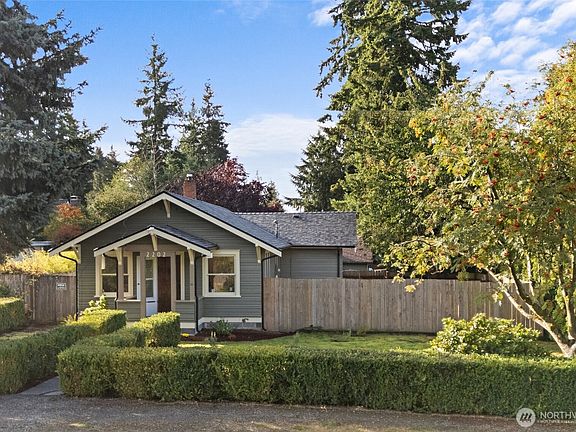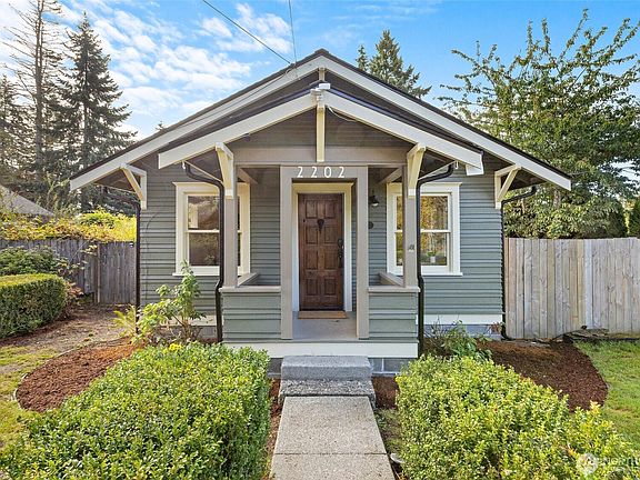 Step into Everett history with this 1922 Craftsman, once near Everett Mall and relocated to Pinehurst. Original fir floors, moldings & baseboards remain, blended with tasteful modern updates. Renovated kitchen features quartz countertops, stainless appliances & subway tile backsplash. Timeless black-and-white bathroom adds charm & character. Originally 2 bedrooms, now a spacious 1-bedroom with 2 dining areas & 2 living spaces—can convert back to two bedrooms. Fenced backyard, BIG corner lot, detached 280 ft² garage & LARGE cellar. NEW roof & gutters 2023; electrical 2024; propane & water heater 2020; kitchen + fresh paint 2025 – $70K in updates! {INVESTOR ALERT!} Live or rent the main home & build a shop or possibly two more homes in back!!