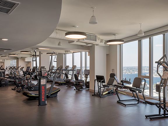 - Exterior features: Bike parking and wash station available, Complimentary common area WiFi, Concierge, Conference Room, Grand lobby experience, Guest Room, High-speed Internet Ready, Package Receiving, Parking Available, Pet spa & outdoor pet run, Steam Room, Storage units available for rent, TV Lounge, Under cabinet lighting in kitchens, View Type: 360 degree wraparound deck with views in all direc, View Type: Private spa retreat with Space Needle views, View Type: Unique ellipse-shaped building means stunning view, Wild Ginger restaurant w/complimentary delivery, Yoga Room with On Demand Fitness Technology