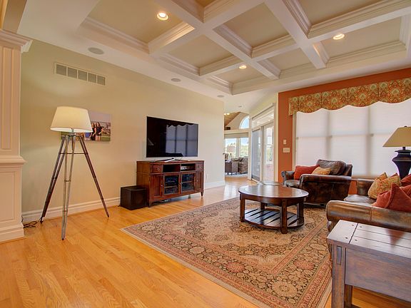 - Features: Walk-Out Access, Breakfast Bar, Kitchen Island, Gourmet Kitchen, Eat-in Kitchen, Pantry, Wood Cabinets, Recessed Lighting, Hardwood Floors, Crown Molding