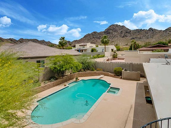 Welcome to your new home nestled in the foothills of Piestewa Peak! This split floor plan home has been remodeled and boasts many exclusive attributes and touches that make it unlike any other home around. It sits on a quiet cul-de-sac street w/ AMAZING Mountain Views that can be taken in from the Rooftop Balcony. It also features 2 Master Suites, Private Window in the Master Shower to enjoy morning sunrises, kitchen windows that open to the backyard making entertaining easy, skylights, & abundant storage throughout. In the backyard you will find an extra-large covered patio, sparkling pool and spa, mature landscape, & a Spiral Staircase that take you to the Rooftop Balcony. Home is close to Everything - Premier Resorts, Restaurants, Golf, & Shopping! Hiking trails w/in walking distance!