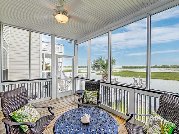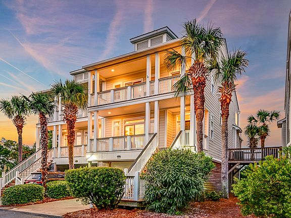 **Water Lover's Paradise on Folly Creek** Walk right out your backyard onto your dock with your own boat lift and head to Morris Island. This stunning property offers breathtaking views and quick access to the sandy shores of Folly Beach. Imagine waking up to a sunrise view of the water, taking your boat or kayak out for a morning adventure, and then strolling across the street to Crosby's Seafood for the freshest catch. In the evening there are sunset view from the study and upstairs bedrooms. Every room has a view! With Folly Beach just a mile away, a day of sun, sand, and surf is always within easy reach. Living here feels like being on vacation every day. More importantly you have an elevator to take you to the upper levels of this home.From the moment you lay eyes on this home, you'll recognize its unique charm. Designed to maximize its incredible waterfront location, the propertyboasts ample decking to embrace outdoor living. Tropical landscaping surrounds the home, enhancing its inviting exterior. Double front porches offer a warm welcome as you approach. Step inside to discover elegant details such as oak flooring, crown molding, plantation shutters, an open floor plan, and abundant natural light. To the left of the foyer, double doors lead to a versatile study with built-in shelving and access to the front porch. As you proceed down the hallway, your gaze will be captivated by the expansive water views. The updated kitchen is a chef's dream, featuring stainless steel appliances (including a new dishwasher), beautiful cabinets, quartz countertops with a granite island, a stylish backsplash, a farmhouse sink, and a beverage fridge. The reverse osmosis system for the ice machine and sink is a thoughtful touch. The kitchen seamlessly flows into the dining area and the living room, which boasts a gas fireplace, built-in shelving, and access to the screened porch with its stunning views. The main level also includes a powder room and one of three stops for the convenient elevator. Upstairs, the primary bedroom is a true sanctuary. This spacious retreat features two separate walk-in closets, a sundeck overlooking the water, and an updated ensuite bath with a dual sink vanity, a roomy soaking tub, and a frameless step-in shower. On the front side of the upper level, you'll find two additional bedrooms, both with access to the upper front porch and phenomenal views. A bathroom with a stunning tile shower and a separate laundry room with a convenient sink completes this level. The covered patio and beautifully landscaped yard are easily accessible from the screened porch or the four-car garage. Just steps from your back door, the dock features an 8,500-10,000 lb boat lift, electric (on a separate panel), and water. Additional noteworthy features include extra insulation under the house, a professionally screened porch, and a storage closet in the garage. The HOA covers annual pressure washing and quarterly pest control, and there's also a convenient community dock. Downtown Charleston is less than 9 miles away, making this location both tranquil and convenient. Don't miss this opportunity to own a slice of waterfront paradise where every day feels like a holiday.