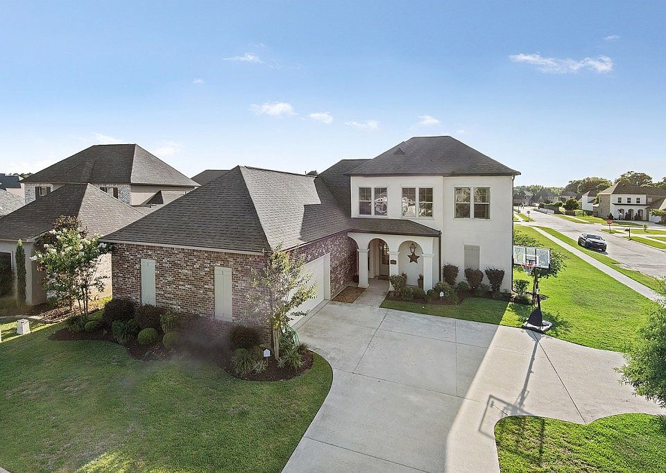 GREAT LOCATION and Immaculate 5/4 house located on a corner lot with circle drive in a gated subdivision. Shadowbrook Lakes features a clubhouse with a fitness center and a pool overlooking a lake. The open floor plan in the living area features tall ceilings, neutral colors with modern fixtures throughout, crown moulding and gas logs fireplace with granite surround. The kitchen features slab granite counter tops with travertine back splash, plenty of white painted cabinets, stainless steel appliances, gas stove, island with cabinets, plantation shutters and a oversized walk-in pantry. Master and guest bedroom and baths downstairs with 3 additional bedrooms, 2 baths and a loft upstairs! The loft can be used as a media, exercise or play room. PLUS: Great closet downstairs, a laundry room that offers plenty of cabinets, a huge pantry and a fenced backyard and a covered back patio. This corner lot has low maintenance landscape and charming curb appeal. House comes with alarm system. This house will definitively not last long!