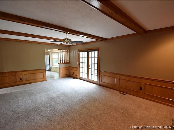 - Description: Built-in bookcases, beams, chair rail, Fireplace,Flooring: Carpet