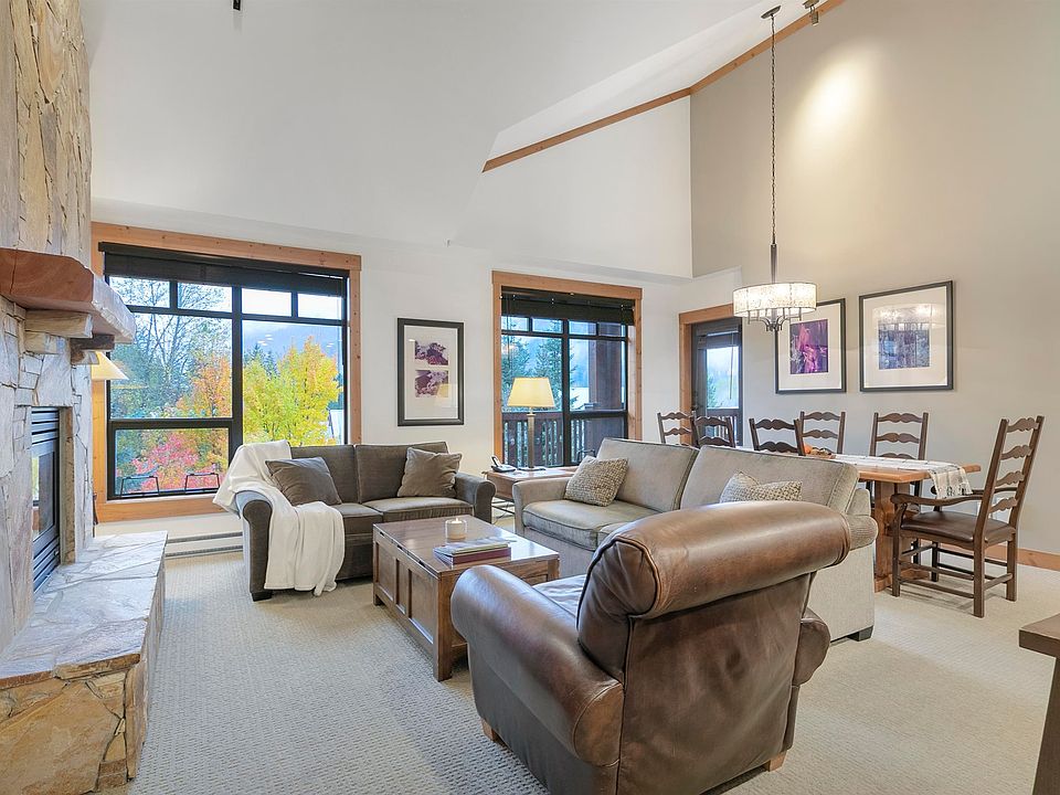 Two outdoor hot tubsSteam roomFitness roomIn-suite laundryVaulted ceilingsPanoramic mountain viewsOpen-concept living