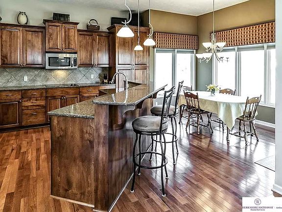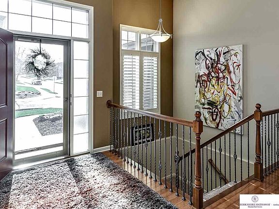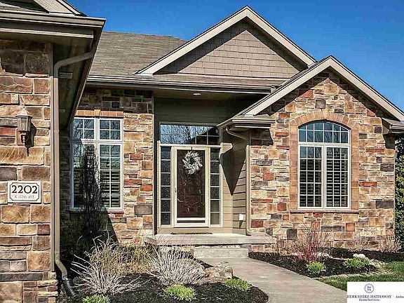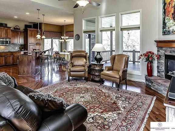This fantastic ranch is in a prime location! Backing to fully grown trees and green space, this well-kept home is on a premier lot! The main floor has real wood throughout and wonderful natural light. Custom stone fireplace. Birch cabinets and great storage in the kitchen. Master suite includes whirlpool and large walk in shower. Two bedrooms on the main level plus main level office. Two bedrooms in walkout lower level. Second fireplace, large Rec room, bathroom and extra large storage in lower level as well! Enjoy the extensive landscaping from the covered deck off the kitchen. A true gem! Easy Dodge Street access! Walk to neighborhood school!