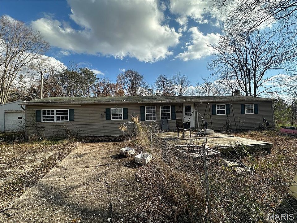 Looking to buy a FIXER UPPER? Ranch home is selling AS IS. Seller will make no repairs or updates. 5 bedrooms, 3 baths situated on 1 acre. There is a partial, unfinished basement that is holding water. It is unknown if the wood burning fireplace is operable - buyers would need to have inspected prior to use. 40' x 23' detached shop building with concrete floor and electric. Drilled well and septic. Just a short distance from town. R-4 School District.
