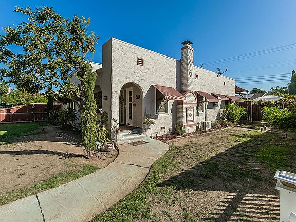 Welcome to this classic Spanish-Style Bungalow in the heart of the Tower District, offering vintage charm with modern efficiency. This beautifully maintained home features a spacious living room with a cozy fireplace, original hardwood floors, and abundant natural light.The updated kitchen includes granite countertops, a pantry, and a breakfast nook with a generous bar area, perfect for extra prep space or casual dining. Down the hall are three comfortable bedrooms and a well-appointed bathroom. Energy-conscious buyers will love the owned solar system, providing long-term savings and sustainability.Step outside to a large backyard deck ideal for outdoor dining and entertaining. The corner lot provides an expansive front yard, great for gardening, recreation, or relaxation.The fully furnished ADU offers its own private entrance and driveway parking, complete with a kitchen (stove, refrigerator, microwave), bathroom, and sleeping area. Ideal for guests, extended family, or rental income.Don't miss out on this incredibly opportunity!