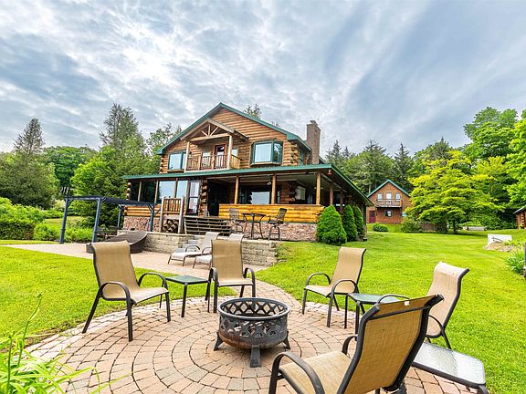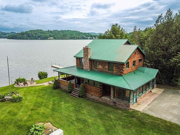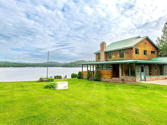 A spectacular property on Harvey's Lake with 157' of direct water access! Enjoy expansive lake views from the covered porch and both living levels of this home. Nicely updated and offers a formal dining room, living room, kitchen, laundry room, mudroom, den and 3/4 bath on the first floor. The second floor: a main bedroom with 3/4 bath, cedar closet and two additional bedrooms. The over-sized, detached, 3 bay garage has room for all your toys and offers an additional 600+ sq ft of additional storage, gym or shop space on the 2nd level. If that wasn't enough, this 1.6 ac property has raised garden beds, plenty of lawn space for playing, a patio and firepit area, brook frontage and an under-home boathouse for easy access to the water. There's an adorable log cabin bunk house that is great for the kids or guest overflow. The whole house standby generator with wi-fi, boat lift, floating dock and jet ski docks will convey with the property. Did I mention the sunsets? Must see this property! Room sizes are estimated. This property is being sold as a seasonal residence.