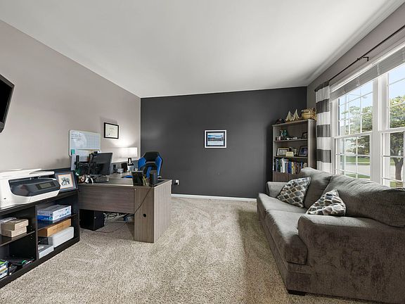 Stunning 4-Bedroom Home in North Grove Crossings, Welcome to this exquisite 2,500 square feet gem in the coveted North Grove Crossings neighborhood. This spacious four-bedroom, two-and-a-half-bath home offers a blend of modern comfort and convenience that's sure to impress. Bright and open living spaces with wide hallways that create a welcoming atmosphere. The updated kitchen boasts black stainless steel appliances and is a chef's dream. Unfinished basement with rough-in plumbing, ready for your custom touches. Dedicated office/den, ideal for remote work or as a cozy reading nook. Spacious bedrooms, three of which feature walk-in closets for added convenience. Corner lot with meticulously landscaped grounds, providing ample outdoor space and a Pond. Located in the highly desirable North Grove Crossings neighborhood. Close proximity to top-rated schools, parks, shopping, and dining. Easy access to major highways for a stress-free commute. With its perfect blend of space, functionality, and style, this property won't last long on the market. Don't miss your opportunity to make this house your forever home! Updates to Property: Roof and Gutters 2020, Windows 21 & 22, Fireplace, 21, Counter Tops and Back Splash 21, Fence 19, Carpet and Hardwood Flooring 18, Black Stainless Steel Appliances 18, Sump Pump, Hot Water Heater 18,