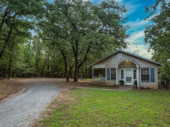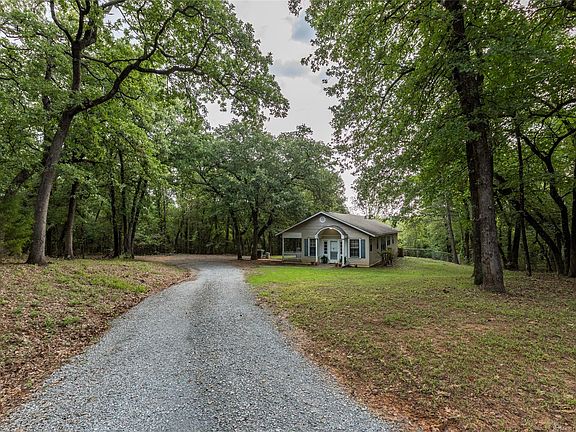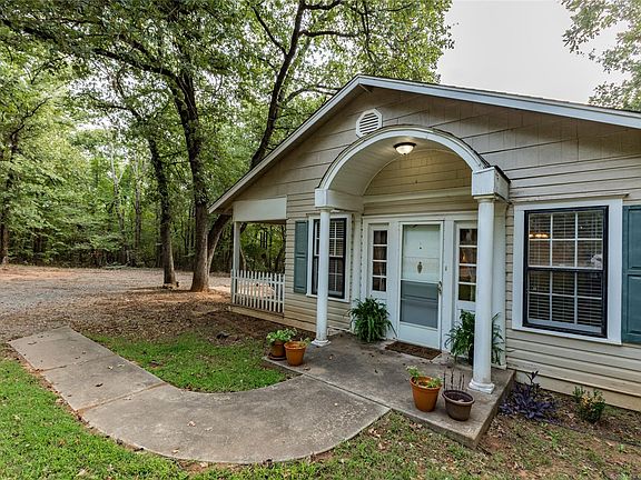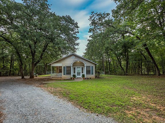 CUTIE FULL OF CHARM! This darling bungalow is a hidden gem, nestled on a wooded acre at the end of a road. Though 2 BR/1 Bath, it's quite spacious with 1442 square feet. Brimming with character, you'll love the high ceilings, covered side porch, and built-in bookshelves around the faux fireplace. The large, fully fenced backyard is perfect for pets and people, alike. Located in the Durant School District, this oh-so-private jewel box won't be on the market for long, so act fast!