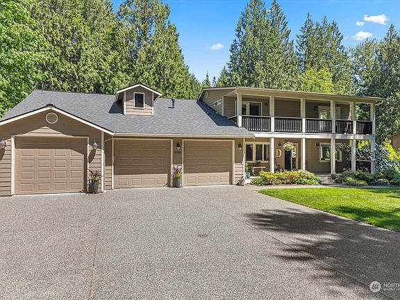 This lovely home & property beckon to wile away an afternoon on the porch surrounded by an idyllic NW setting.Vaulted ceilings in the family room lend a sense of spaciousness. A main floor primary with en-suite bathroom and walk-in closet. A sizeable laundry room on main floor, 2 additional bedroom & bathrooms are upstairs, the stairwell & adjoining loft space are open to the family room below. Kitchen with stainless steel appliances, plus adjacent are an eating nook on one side & formal dining on the other. The living room is ideal for game or movie nights. Massive bonus room over the garage, a Whole House Generator and ample RV parking. This sylvan scene is gardeners delight throughout the year complimented by a beautiful flagstone patio.