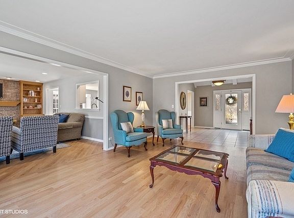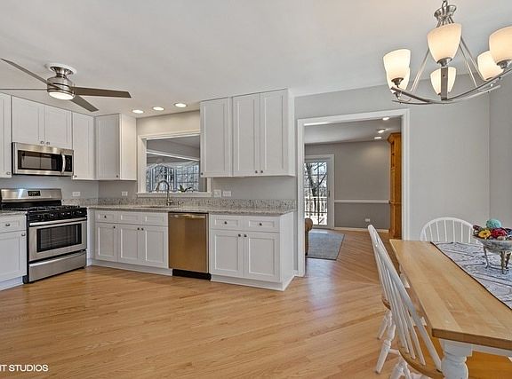 Incredible 4 bedrm RANCH w/NEW KITCHEN & finished bsmnt has every luxury Kildeer has to offer! Guests follow a garden lined walkway & greeted into vaulted foyer w/beveled glass details & designer lighting. A wall of sparkling windows, angled hardwood & wide entryway leads into the spacious LR. Memorable meals will be hosted w/ease in the formal DR w/white crown & wall mouldings. Sunny kitchen is ALL NEW w/42" white cabs, ss appls, thick granite & recessed light. Enjoy sipping coffee in the full sized eating area w/gorgeous views of expansive bkyrd or dine al fresco among a lush canopy of trees on the expansive deck w/access from slider in FR w/cozy wood burn arched brick frplc & custom built-in cabinets. Large mstr bdrm has priv bath w/soak tub, sep shwr & huge WIC w/organizer. 3 generous sz addl bdrms each w/deep closets + xtra full bth. Head through 1st flr laundry rm to the full finished bsmt rec rm w/plenty of space for entertainment + full size storage room. Only 5 miles to Metra!