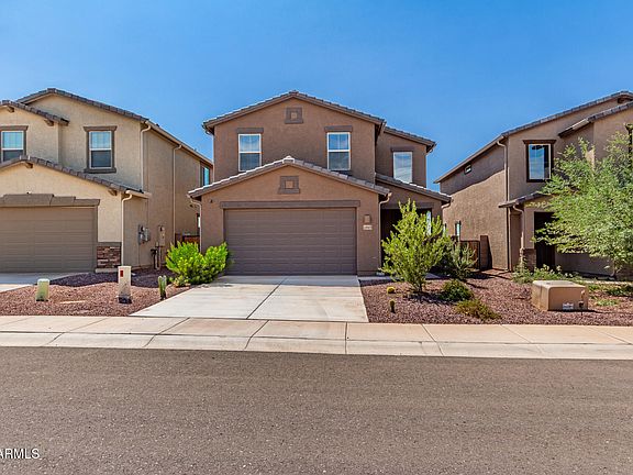 Home, sweet home! This beautiful 3 bed, 2 bath residence in Red Rock Village is looking for its new owners! Featuring great curb appeal, a low-care landscape, and a 2 car garage. Discover a spacious great room w/soft carpet in all the right places and custom palette throughout. The kitchen comes equipped w/ample cabinet & counter space, a pantry, tile backsplash, SS appliances, and a prep island w/a breakfast bar. Continue upstairs and into the cozy loft, where you can spend a spend a relaxing Sunday afternoon! You'll love the primary bedroom, showcasing a private ensuite w/dual sinks for added comfort. Lastly, the sizeable backyard includes a covered patio, paver seating area, and artificial turf! What are you waiting for? Don't miss out!