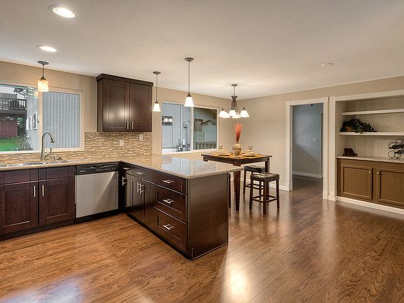 For a Showing, Contact Matt Jensen 206-909-8200. You will be wowed by this newly updated 5 bedroom, 2.5 bath home. You are greeted with oak hardwoods, warm paint colors and 3 bedrooms including the master on the main floor. Your spacious kitchen has new self-closing cabinets, s/s appliances and slab granite counters with tile backsplash. Large deck on main, plus deck off master. Huge daylight basement has kitchenette plus 2 bedrooms plus den (poss MIL). New windows thru-out, new exterior paint, fully-fenced yard. Located in the award-winning Northshore school district.