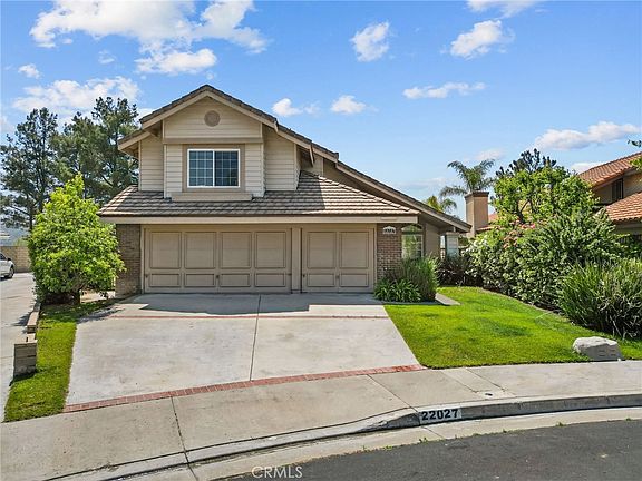 Welcome to 22027 Pamplico Drive. This wonderful POOL and VIEW home features 4 bedroom 3 bath (1 bedroom and 1 bath downstairs) over 2,400 sq. feet, a 3 car garage and located on a cul-de-sac. second level and find a huge primary suite, a walk-in closet , dual sinks, soaking tub and separate glass-enclosed walk-in shower. There are two additional bedrooms, one is extra large. The kitchen has ample cabinet space a center island and is opened to the family room. No Mello Roos and a low HOA (Approx. $55 a month) HOA amenities include a sparking community pool, basketball courts and park. This home is conveniently located near parks, award winning schools, restaurants, shopping and much more.