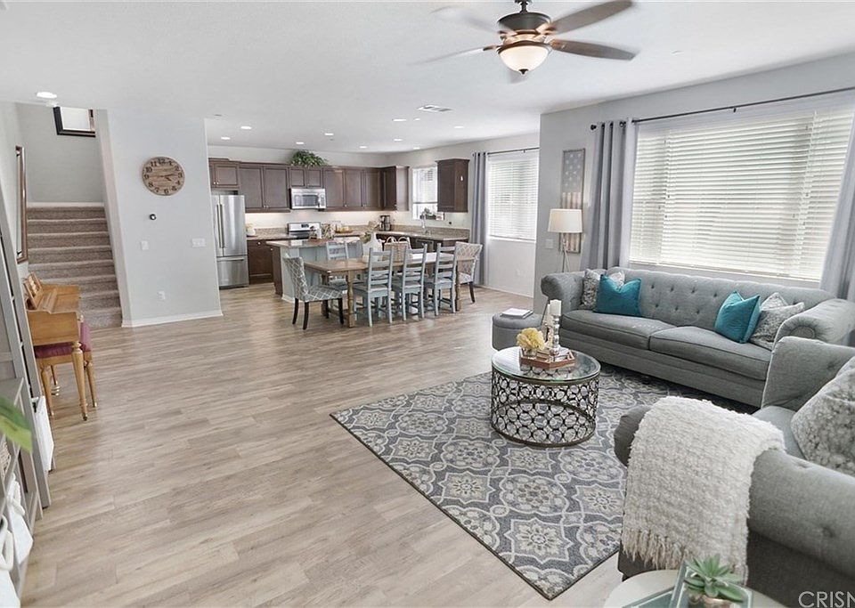 NEWER GATED COMMUNITY! Amazing home in the sought after River Village community. River Village is centrally located with easy access to both the 5 and 14 fwys, shopping and restaurants. It has lovely paseos, biking trails, the 25 acre River Village city park as well as a private playground and pool within the gates of the Providence community of River Village. Another amazing feature of River Village is the proximity to amazing award winning schools, including state of the art renovated STEM School. The home has a great open floorplan featuring family room, dining area, and upgraded kitchen with wood-look vinyl plank floors throughout. Kitchen features stainless steel appliances, granite counters, and island with breakfast bar. Downstairs also features a full bed and bath. Upstairs you will find the master suite with private bathroom and walk in closet. There are two additional bedrooms, guest bath, laundry, loft, and built in office area upstairs, perfect for working from home or home schooling. Backyard features patio area as well as artificial grass area. This home features many energy saving devices including solar panels, tankless water heater, EV outlet in garage, NEST smart thermostat, and drip irrigation system. Ceiling fans, dimmable recessed lighting, and freshly painted top off this home. Come check it out today!