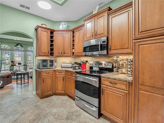 KINGS RIDGE 55+ ACTIVE ADULT Golf Course community located in the hills of Central Florida. This most sought after St Laurent model is IMMACULATE Move in Ready. This beautiful open floor plan home features 3 bedroom, 2 full baths, upgraded laminate floors,the eat in kitchen has stainless steel appliances, solar tube skylight, 42" cabinets, with a slider to the large screened lanai. The great room has 2 solar tube skylights for sunshine all day. Large walk closet in the master bedroom. Dual sinks with granite counter top. New washer dryer, new roof 2016, A/C replaced 2012 with a 10 yr warranty and service twice a year. Entertain on the LARGE screen lanai with a view of the private backyard. HOA'S include 24 guard gate, home phone, internet, cable, yard maintenance, mulching, painting your house every 6 yrs, 3 pools, 2 spas,tennis & pickle ball courts The Clubhouse boast activities to keep you busy day and night. Plays, dances, travel club meetings, bingo,, movies night, clubs, card games, private parties, library, billiards, classes of all sorts, trips to the local malls. Enjoy a day trip to one of the attractions Disney, Universal, Sea World, world famous outlet mall. Less than an hr drive to Orlando airport. Play golf on one of the golf courses, Championship course or Executive course. COME LIVE THE GOOD LIFE IN BEAUTIFUL CENTRAL FLORIDA. Some furniture negotiable.