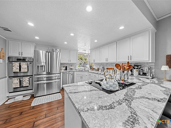 Recently renovated from top to bottom, the home features a fully remodeled kitchen with sleek cabinetry, quartz countertops, and stainless steel appliances. Luxury flooring, fresh paint, upgraded windows, and improved insulation—including blown-in insulation over the garage—enhance comfort and energy efficiency throughout.