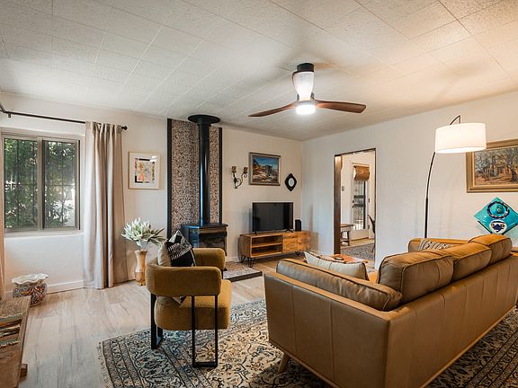 A perfect little north valley adobe wonderfully restored to its original charm, but with modern feel and function! The interior finishes are FANTASTIC! New Counters, appliances, fixtures, vanities, lights, roof, stucco, flooring and more! Authentic, understated, SW charm and feel with deep windowsills, lots of exposed wood, vigas, and wonderful natural light! Large rooms accommodate a variety of configurations, and two baths is a must have! A new prefab outbuilding can be storage, a shop, or finished into a nice office w porch! The lot is over 1/4 acre w/ room for addition, garage, garden etc. There's a big, mature mulberry tree that offers a wonderful shade off the kitchen. An A+ valley location just a short distance to the river, the nature center, oldtown, downtown, and I25. Thank yo