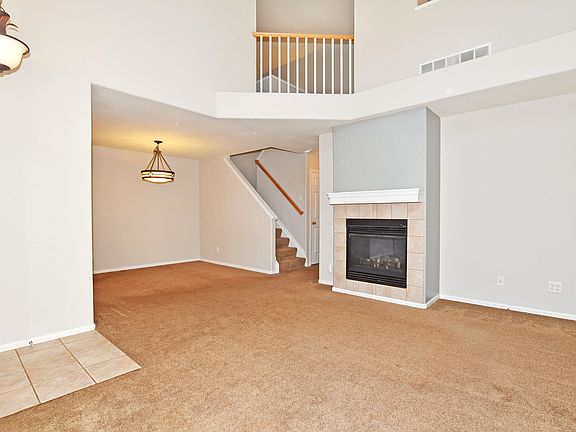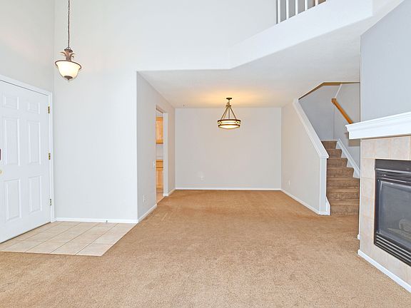 Step inside to a bright open living room with a cozy fireplace, ideal for relaxing or entertaining. The separate dining area flows into a sunny kitchen featuring ample cabinet space. Upstairs, you'll find a large master suite with a private en-suite bathroom, dual vanities, and a generous walk-in closet. The second bedroom is equally spacious and sits next to another full bath with a double vanity. A bright loft area provides flexible space for a home office, playroom, or reading nook.