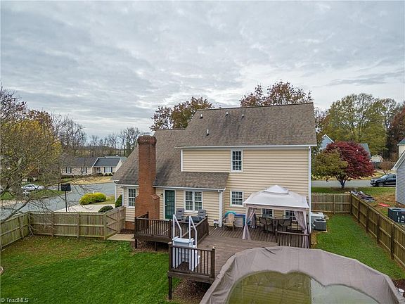 Stunning & UPDATED 2 STORY w/ over 2000 SQ FT, 4 bedrooms & 2.5 baths. Desirable CORNER LOT in KELLAM PLACE neighborhood. SIDE ENTRY garage. SPACIOUS floor plan. Formal LIVING & DINING, kitchen w/ backsplash (appliances 2017), pantry closet, & bkfst nook. Cozy DEN w/ gas log FP. Waterproof LVP flooring (2017), Roof (2014), new CARPET (2020), upstrs HVAC (2019). Fresh paint. Master Ste w/ UPDATED BATH. 3 add'l beds (4th bdrm/bonus rm). Storage bldg. FENCED REAR YARD. Expansive DECKING w/ above ground POOL. Popular SOUTHERN SCHOOLS. MINUTES to I40/85 makes EZ commute to TRIAD & TRIANGLE areas!