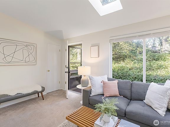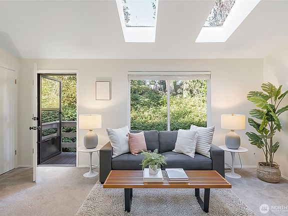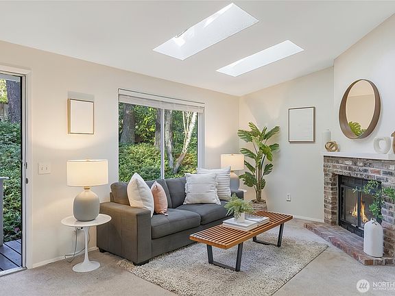 Cozy fireplaceNatural lightCovered deckMultiple skylightsQuiet natural settingVaulted ceilingsUpdated continental bath