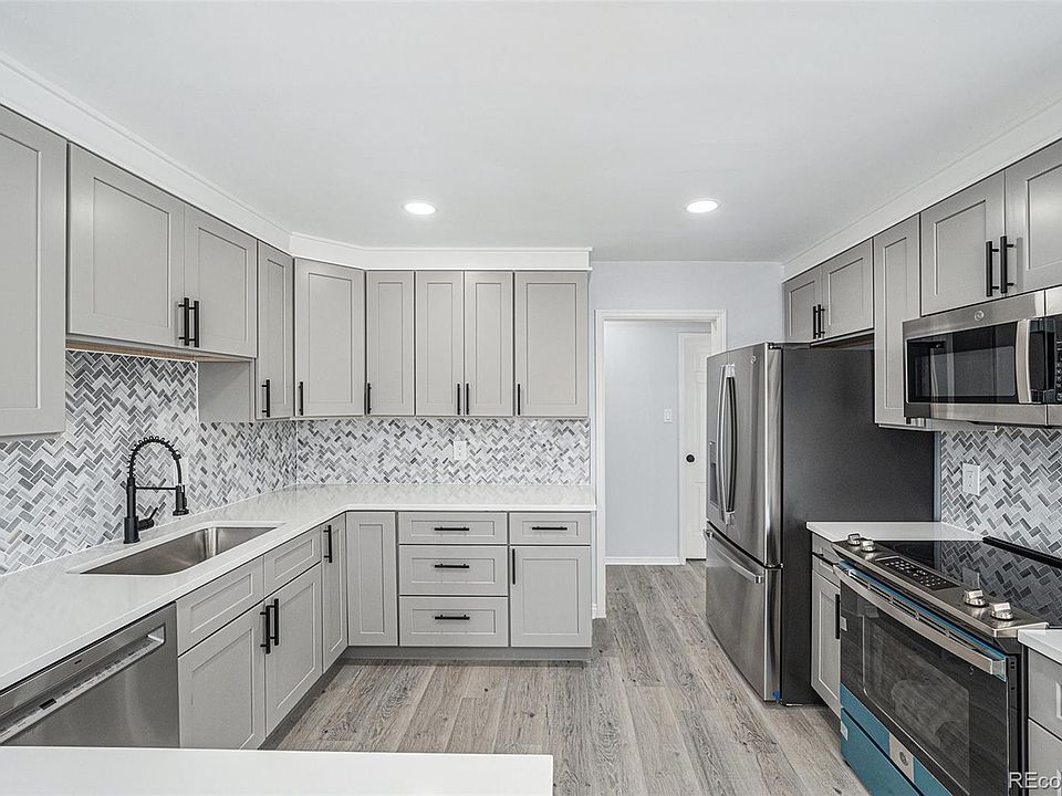 This bright, updated condo features an open floor plan with brand new carpet in the bedrooms and sleek laminate flooring in the main living areas. The spacious living/dining area is perfect for entertaining, and the modern kitchen includes stainless steel appliances plus a full laundry room with washer/dryer. Enjoy low-maintenance living with a nearby pool and BBQ space. Includes 2 reserved parking spots (1 garage, 1 surface) and extra secured storage space right across the unit. Prime location—minutes to I-25, Light Rail, shopping, dining, DTC, and Cherry Creek.