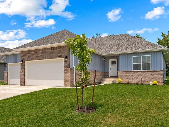 Best-Priced 3-car garage Brand-New Home in Ozark with this many upgrades! Featuring a long list of upgraded extras, this home truly stands out! Enjoy full yard irrigation, custom wood shelving, a spacious walk-in pantry, & an expansive kitchen with full granite backsplash and an oversized granite island--perfect for entertaining. Inside, the open & airy floor plan creates a bright, welcoming feel from the moment you enter. The blonde LVP flooring runs seamlessly throughout--no carpet, no transitions--for a clean, modern look and easy maintenance. The primary suite is thoughtfully designed, featuring large windows, dual vanities, a spacious tile shower, & an oversized walk-in closet with wood shelving. You'll also love the extra-large laundry room for added convenience. Step outside to the large covered back deck overlooking peaceful farmland views--the perfect place to unwind. The fully sodded yard with front & rear irrigation means low maintenance and lasting beauty. Located in North Ozark's Creek Bridge community, residents enjoy access to the neighborhood pool, clubhouse, & more! This home is not your ordinary new build -- it's full of thoughtful upgrades & incredible value!