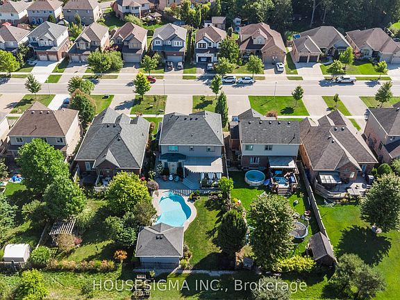 The home you've been waiting for! This stunning 2-storey offers over 2,600 sq. ft. of living space with 4+1 bedrooms and 3.5 bathrooms. The exterior combines brick, stucco, siding, and stone for timeless curb appeal, and the beautifully landscaped lot is enhanced with mature trees and gardens. Inside, you're welcomed by a spacious open-concept main floor perfect for hosting large gatherings with a seamless flow to the outdoors. Upstairs, you'll find four generous bedrooms, including a spacious primary suite with an impressive ensuite featuring a private toilet closet. The fully finished basement offers incredible versatility with a massive recreation space divided into two areas: one with heated ceramic tile floors and a rough-in for a kitchenette (currently used as a gym), and the other a cozy retreat with a fireplace and built-in shelving. A fifth bedroom, a full 3-piece bathroom with heated floors, two storage rooms, and an oversized cold room complete this level. Step outside to your private backyard oasis featuring a large composite deck with pergola, a heated saltwater lagoon-shaped pool, and a cabana with a 2-piece bathroom and change room ideal for entertaining or unwinding. Enjoy breathtaking sunsets and the peaceful experience of deer right at your back fence. With many upgrades over the years, pride of ownership is evident throughout. This home truly has it all come see it in person to appreciate just how incredible it is!