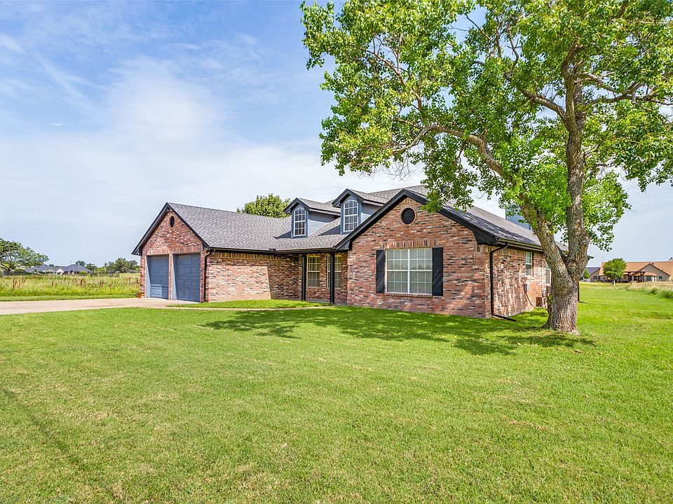 Golf course home with pond view on # 5 fairway of the new golf course. Features open concept design, split bedrooms, updated flooring, backsplash, fixtures, paint, and a new roof (2023).