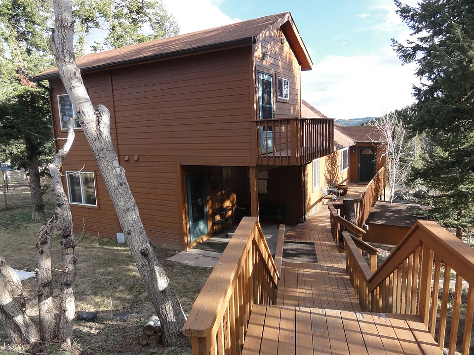 Beautiful Morrison home for rent. 4+ bedroom, 3.25 bath (main bedroom has 5-piece master bath and hardwood floor log loft with walk-out balcony), 2312 sq. ft. home on 1.26 acres. Open floor plan, cathedral ceilings, fireplace, hardwood floors, tile baths, large viewing windows. Half wrap deck with spectacular views and rock croppings. 3+ detached garage with tons of dry storage. Fenced-in dog run with kennel, paved driveway. Small dog only preferred.