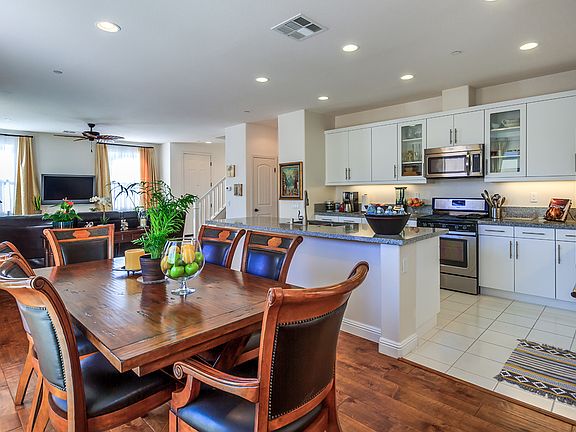 Gorgeous 4 bed 3 bath detached home with views of the mountains and city lights, inside opens to a bright living room with an open floor plan that's great for entertaining. lots of windows and sliding door to backyard and patio with a fresh feel of outdoor living. Gourmet kitchen w/granite counter tops and stainless steel appliances. Large laundry room with lots of space for storage, 3 of the bedrooms are located upstairs and 1 bedroom is downstairs. Enjoy the security gated community with pool, spa, a tot lot and BBQ pit. Great location!