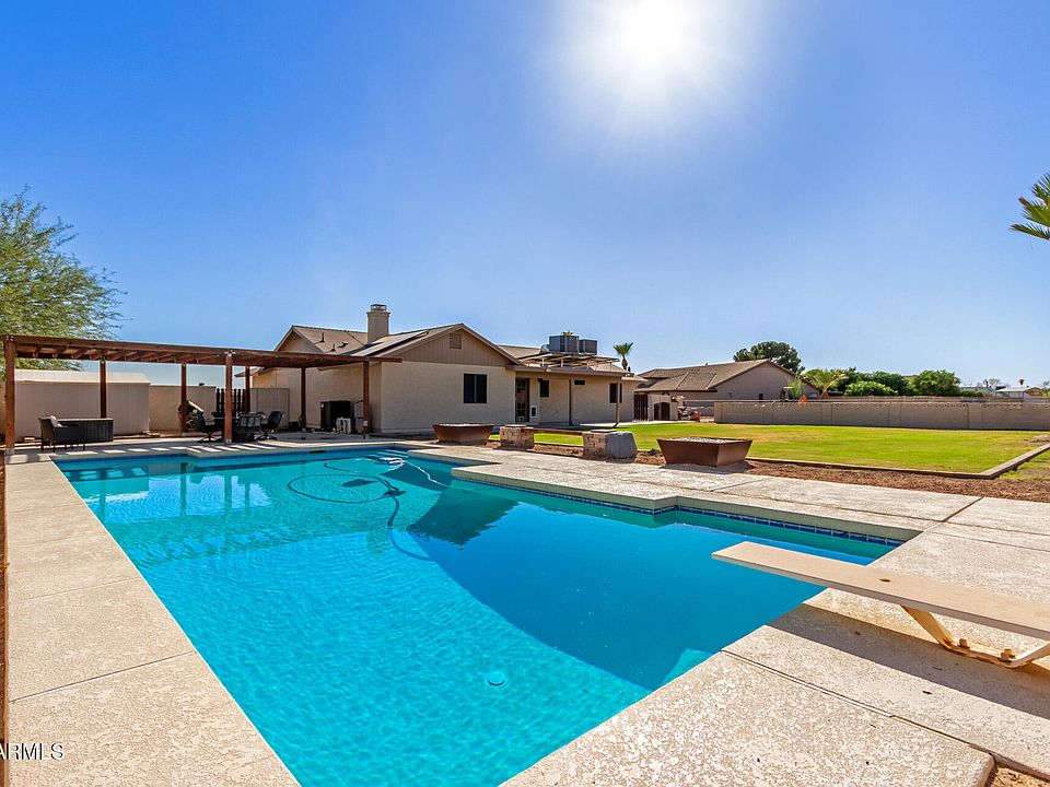 Your dream home awaits! This enchanting 5-bedroom gem adorned w/ paid off solar offers the perfect blend of comfort, style, & functionality. Discover a spacious living room w/plush carpet, vaulted ceilings, neutral tone, & ceiling fans throughout. Just off the living room, a bright dining area opens to the back patio. The kitchen comes w/track lighting, plenty of cabinets, a walk-in pantry, & SS appliances, making everyday cooking a breeze. Venture to the serene main retreat, showcasing a fireplace, an ensuite w/dual sinks, a soaking tub, & a walk-in closet. Finished basement expands your living space w/a HUGE family room & additional bedrooms. Outdoors, enjoy the generous size backyard, providing a covered patio, pergola, storage shed, & a heated pool. A deal like this won't last.