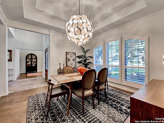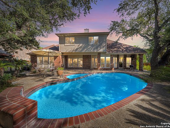 Welcome to Your Oakwood Oasis Fall in love with this beautifully updated home in the gated Oakwood subdivision in Deerfield area of San Antonio - where timeless curb appeal meets a backyard retreat you'll never want to leave. From the moment you enter, your eyes are drawn through the spacious living room to the sparkling pool beyond. The formal dining room sets the stage for celebrations, while a private home office with views of the lush front yard offers the perfect spot for work or study. The open-concept living and family rooms share a gas fireplace, creating warm spaces for gatherings big and small. In the chef's kitchen, granite counters, stainless appliances, a wine fridge, and designer lighting elevate every meal - from casual breakfasts at the bar to festive dinners with friends. Step into the backyard and discover your personal paradise: a heated pool and spa surrounded by lush landscaping and accent lighting, offering year-round enjoyment. The first-floor primary suite feels like a retreat, complete with wood floors, vaulted ceiling, backyard access, a spa-inspired bath, and a generous walk-in closet. Upstairs, a skylit loft offers flexible space for a media room, home gym, or playroom, with two additional bedrooms each featuring walk-in closets. An oversized side-entry garage, abundant storage throughout, and thoughtful details like a utility room with sink and extra fridge make this home as practical as it is beautiful. An amazing home, in an amazing location - ready to welcome its next chapter.