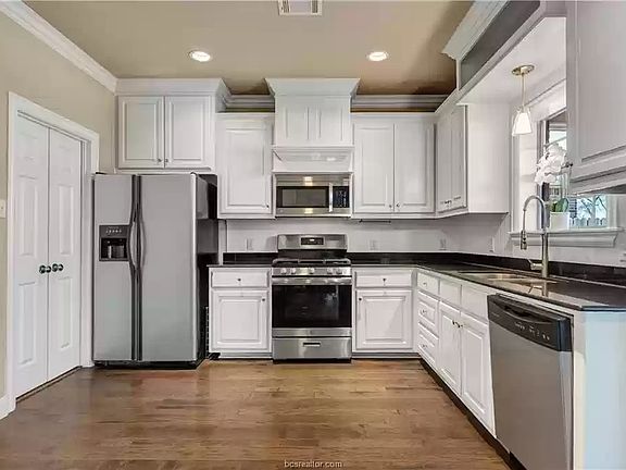 November 15th Move-In! This 4-bed 2.5-bath home is located on a cul-de-sac in Castlegate, convenient to all of South CS shopping, dining, medical facilities, and schools! A warm welcome awaits you as you enter the home with vinyl flooring throughout the common areas, custom-built ins in the family area, and a large eat-in kitchen which includes stainless steel appliances, granite countertops, and beautiful tile backsplash. The master bedroom includes carpeted flooring, an ensuite bath with granite countertops, double sinks, a walk-in shower, and a spacious soaking tub. Enjoy evenings on the covered patio with a built-in grill and fire pit, or spend time taking advantage of Castlegate's walking trail, community park, and ponds. This home is zoned to Forest Ridge Elementary, Pecan Trail Intermediate, Wellborn Middle School, and College Station High School.