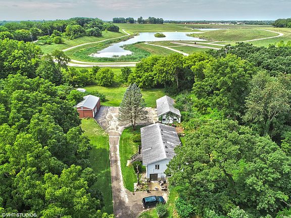 Great 5+ acre parcel with move in ready Raised Ranch home. Big Pole barn and 3+ car detached garage. House will need some TLC . Lot wraps around the corner property and also has frontage on Klasen Rd. Adjacent to the new Cary Quarry Lake Park. You have your own private driveway with trees galore surrounding you in nature. tons of potential either as residential or commercial. Zoned B-2