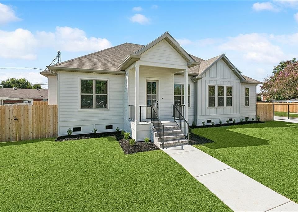 Stunning NEW Construction on a DOUBLE LOT in Chalmette!!! This gorgeous 3 bed 2 bath home has a massive living room that opens to the kitchen and dining areas! Kitchen has beautiful stainless steel appliances, subway tile backsplash, plenty of cabinet and counter space including a large island, all with quartz countertops. Ten foot ceilings throughout. Spacious primary bedroom with walk-in closet, attached primary bath has separate vanities, walk-in shower and large tub. Oversized back porch perfect for entertaining and relaxation. Double lot with a large fenced in yard!!!