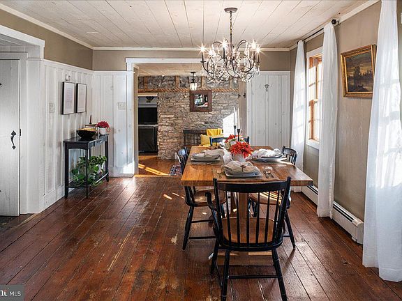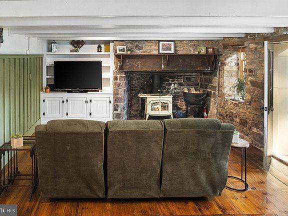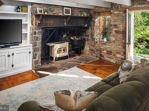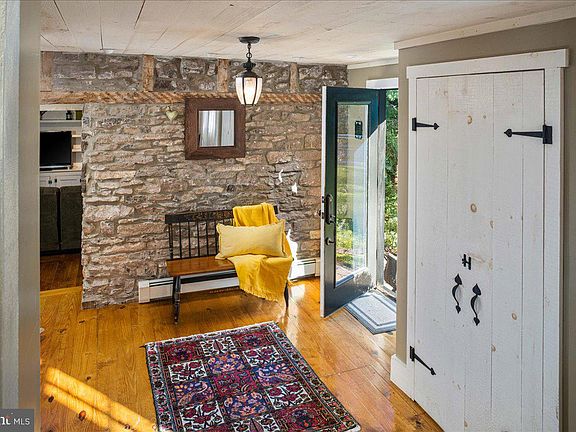 History and charm blend beautifully with modern conveniences in this home across from Bulls Island and the Lumberville walking bridge. Minutes to Stockton, the Hunt, Reading, Sorby House, one of the first built in Raven Rock, invites you to step back in time while enjoying updated amenities.The bluestone path winds past dry-laid stonewalls and delivers you to the front door. Enter the foyer, part of the original structure, and step down to the living room with exposed fieldstone walls and the ‘kitchen fireplace’ with wood-burning stove insert. Heading back through the foyer find the dining room that leads into the updated kitchen with stainless steel appliances, granite counters, radiant heat floors, and high ceilings. A powder room, first floor laundry, and walk-in pantry complete this level. A pie staircase leads up to the private quarters above. The two-story primary bedroom suite features custom millwork on ‘one of the most beautiful and original paneled fireplace walls still in existence in the area’ and private outdoor access. Steps lead up to a small office/library, ensuite bath with double vanity and glass shower, and dressing room with custom built-ins. A large room with vaulted ceiling, loft, and charming covered porch connects to a dressing room/office, which flows into the third bedroom; full hall bath is adjacent. The terraced yard offers tidy flower beds, established perennials, a dining platform with privacy fence, and shed. Additional features include: Brand New 2022 septic, 2022 exterior painting, 2021 roof, back gutters.