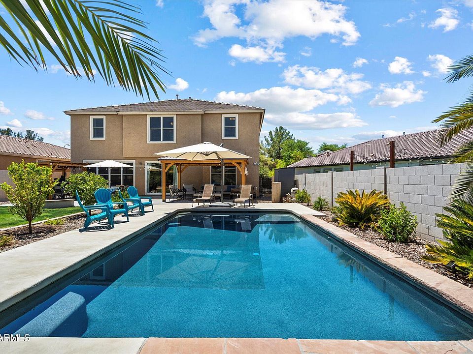 Beautifully maintained home on one of the largest lots in the neighborhood! Features a 3-car tandem garage w/cabinets, 4 bedrooms plus office/den & huge loft. No carpet downstairs—tile & polished concrete throughout. Spacious kitchen with gray cabinets, stainless appliances, giant island, walk-in pantry & oversized slider for seamless indoor/outdoor living. Primary suite offers massive walk-in closet, dual vanities, jetted tub & separate shower. Backyard oasis includes pebble tech pool w/Baja shelf & new pump, refinished cool deck, expanded patio, 2 solid-wood shade structures, lush landscaping & mini fruit orchard. NEW energy-efficient AC units w/smart thermostats, new front yard landscaping w/smart irrigation, storage shed & more. Minutes to Sky Harbor, South Mountain trails & downtown!