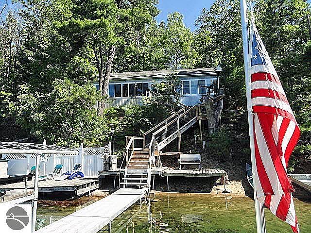 Arbutus Lake is right out your front door with this sharp 3 BR home. Nice firm private frontage and amazing lake views. Plenty of room to enjoy the outdoors from the large 3 seasons porch, patios and lakefront deck. The home features an open floor plan, fireplace, main floor laundry and great Northwoods charm. There is a finished oversized garage with kitchenette and bath. Arbutus Lake is an all sports lake located just minutes from downtown Traverse City. This home also has vacation rental history. Presented by Ken Weaver - Traverse North Realty - 231-357-0821