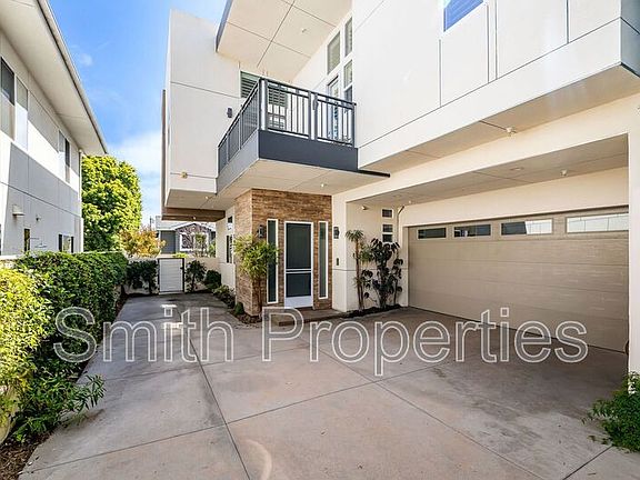 Welcome to this exquisite 2-level, DETACHED townhouse with 2,420 sq ft of modern luxury! This home features 4 spacious bedrooms and 3.5 bathrooms, designed with quality construction and sophisticated design throughout. Step inside to find soaring tray ceilings that add elegance to the open-concept living, dining and kitchen areas. The modern kitchen is a chef's dream with a beautiful slab island, stainless steel appliances, and sleek cabinetry. Sliding doors lead to the backyard with a patio, garden, and grassy areas. Also at the ground level, enjoy the convenience of a guest bath and direct access to a 2-car garage with built-in storage. Upstairs, you'll find a versatile common space, perfect for a library or second living area, along with a balcony to soak in the beautiful Southern California sunshine and breezes. The upper floor also houses all 4 bedrooms and a laundry room. Each bedroom features tall, vaulted ceilings for an airy feel. Two of the bedrooms share a Jack & Jill bathroom with dual sinks and a private toilet/tub/shower area. Bedroom 3 has its own full ensuite bath with a shower/tub combo. Natural light floods the primary suite, the sanctuary of the home, boasting more stunning ceilings, a cozy fireplace, dual closets, and direct access to the balcony. The luxurious ensuite bath is a spa-like retreat, featuring a gorgeous walk-in shower, separate soaking tub, dual vanity sinks, linen storage, and a private commode. Up one more flight you'll find the cherry on top, the roof deck, offering views of Palos Verdes and the twinkling city lights of the surrounding neighborhoods. Other great bonuses of the property include central A/C, tankless water heater, and central vac. Don't miss the chance to make this striking, contemporary townhouse your own! **Owner will consider pet with submission**