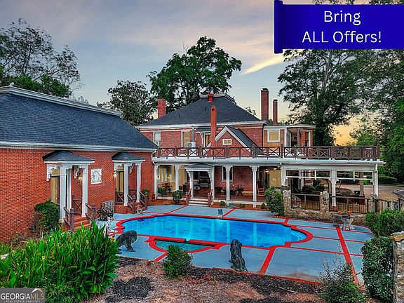BRING ALL OFFERS! Formally known as Regency Hall, this iconic 1890 historic home sits just 0.4 miles from Covington Square and next door to The Twelve Oaks (the famous Vampire Diaries house). Built with 18-inch-thick masonry walls and 4-sided brick, this residence blends timeless Southern charm with thoughtful modern updates. Offering 5 bedrooms, 6 bathrooms, and hardwood floors throughout, the home includes a main-level guest suite plus an upstairs primary suite and three additional bedrooms with private baths. The updated kitchen features a natural gas range, commercial vent hood, stainless steel appliances, and a large island. A stunning formal ballroom with 15 ft ceilings and a custom bar (included) provides an incredible entertaining or event space. Outside, enjoy the pool, outdoor kitchen, and garden area. Over 10 antique furniture pieces, valued at $30,000+, will convey at no cost to the buyer. Zoned to allow a bed and breakfast for added versatility. View the 3D tour and 2D schematic online. Appointment required-no entry without a scheduled showing. A detailed history brochure will be available during your visit. BRING ALL OFFERS!