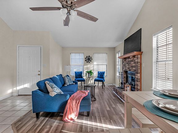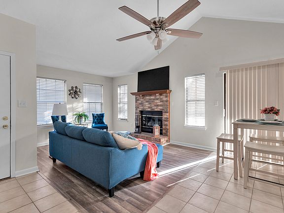Welcome to this charming home located in a peaceful cul-de-sac, just a stone's throw away from Eglin Air Force Base. As you step inside, you'll be greeted by the cathedral ceilings, creating an open and airy atmosphere. The focal point of the living room is a beautiful brick fireplace, perfect for cozy evenings with loved ones. This home has been freshly painted, giving it a clean and modern feel. Natural light floods the space, thanks to the abundance of windows and sliders, creating a warm and inviting ambiance. Window blinds offer privacy and control of the natural light. Outside is a covered patio with and small wood deck. With its desirable location close to Eglin AFB, this home offers easy access to amenities, shopping, and dining options.