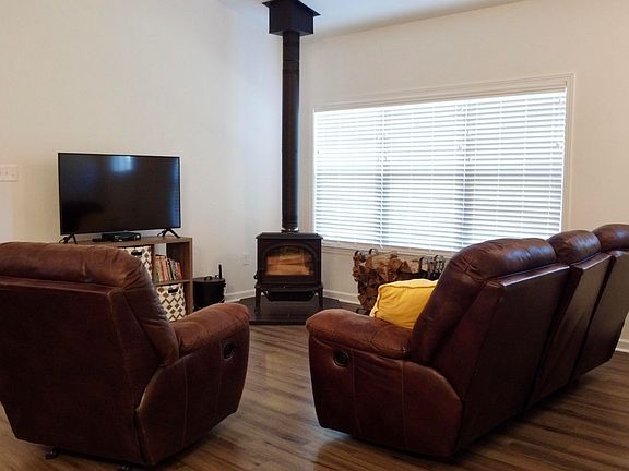 This rare and serene property features single level home built in 2017 w/ 2 bedrooms, 2 bathrooms and a bonus room w/ closet. This cozy home is nestled on a serene 17.83 acres surrounded by nature. This open concept living w/ cathedral ceilings contains a wood burning stove for cozy warmth through the cold winter months. 8 cords of split wood ready to burn. Luxury vinyl flooring throughout residence. The property is Greenbelt approved & offers plenty of space for hiking, hunting or even future mountain-top building. A well-house w/ brand new UV filtration & water softening system, sits adjacent to the home offering extra storage for tools, yard equipment or toys. Additional property features include: play fort w/ double swing set and small orchard in front yard. Schedule your showing now!