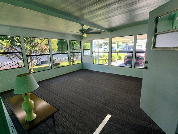 Let the sunshine in at Sunshine Village. This home screams Florida and is calling you to be the new owner. Updates to the home include, newly painted outside, roof is an est 3 years old, new Pella windows, new blinds, new exterior doors x3, central heat and air est 2016, new LVT flooring in living and dining, and updated vanities in both bathrooms. If you are looking for a workshop this home has it, 16x16 and has plenty of room. Home also has handicap ramp for easy access. Plenty of parking and a large year. Community has affordable lifestyle fees which include lawn, sewer, and water. Community also has planned activities, pool, and community fire pit. Webster market is within biking distance. Do not let someone else call this home. Call today! LB10762