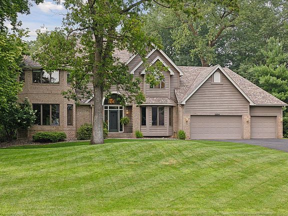 Stately, pristine two-story home nestled on a private, wooded lot within a highly desirable neighborhood and located in top-rated Lakeville Schools! This meticulously maintained residence combines timeless elegance, thoughtful updates, and quality construction that exceeds new builds, offering a truly grand layout and an inviting, majestic setting. From the moment you step into the expansive two-story foyer, you'll feel the pride of ownership and attention to detail throughout. The heart of the home is the open-concept kitchen, featuring granite countertops, ample cabinetry, casual dining space, and stainless appliances—perfect for everyday living and entertaining. Adjacent to the kitchen is a spacious family room with a gas fireplace, a sunny 4-season porch that steps down to the deck, and an updated formal dining room with a convenient butler's pantry. The main level also features an updated formal living room. Upstairs, the luxurious primary suite offers a true retreat, featuring a cozy sitting room with French doors and a gas fireplace, walk-in closet, dual vanities, a jetted tub, and a separate walk-in shower. Two additional upper-level bedrooms each include walk-in closets, ceiling fans, and share a spacious Jack-and-Jill bathroom. The finished walk-out lower level adds even more functionality and charm, with a large family room, a wet bar, gas fireplace, 4th bedroom, and a 3/4 bath, ideal for entertaining or multigenerational living. Oh, did we mention the XL storage room? Enjoy unmatched outdoor living in the beautifully landscaped yard that was professionally designed. Savor the serene backyard with mature trees, privacy, and multiple spaces to relax or host. Features include a large deck, sprawling paver patio, in-ground fire pit, French drain system, and WiFi-controlled irrigation. Trees line the rear of the lot for a true backyard oasis feel. Ideally located just 25 minutes from downtown Minneapolis, with easy access to shopping, dining, parks, and major commuter routes. This home blends luxury, location, and lifestyle, and is ready for you to move in and enjoy. Truly a must-see to appreciate all the features and space this beautiful home has to offer. Don't wait, schedule your private showing today!