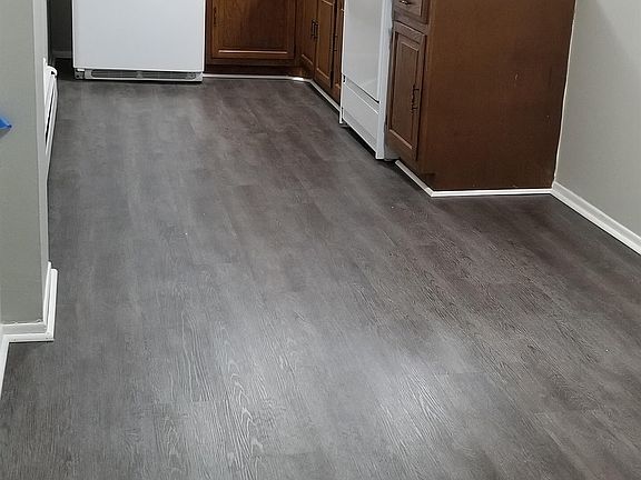Vinyl Plank Flooring in Kitchen, Dining Room and Bathroom.