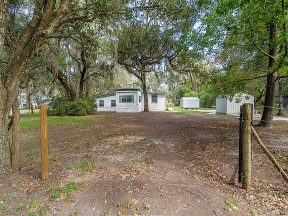 Located in the Lakeview Manor subdivision with deeded Pegram Lake access just across the street, this property offers a fenced and gated .44-acre treed lot with beautiful landscaping and plenty of room to enjoy the outdoors. The original mobile home was built in 1980 and includes 672 sq ft, 2 bedrooms, and 1 bathroom, but has been expanded with two attached additions: one measuring 14’x20’ and another 29’x18’ with two rooms. Together, these spaces provide a total of 1,312 sq ft of living area with flexible options for bedrooms, office, or den. Inside, the updated kitchen features abundant oak cabinetry, Formica countertops, appliances, and a built-in area for microwave and storage. The home includes fresh paint, laminate and tile flooring, and updated electrical. Outside updates include fresh exterior paint, metal roof, and HVAC system (approx. 10 years old). Two storage sheds provide utility space; one includes a laundry room with full hookups. Conveniently located just 10 minutes from downtown Fort McCoy for groceries, pharmacy, gas, and dining. A short drive brings you to Silver Springs for big-box shopping and restaurants, and Ocala is only another 10 minutes away with additional entertainment options. Gainesville is an easy 50-minute drive. For outdoor enthusiasts, this location is minutes from the Ocklawaha River, Ocala National Forest, and natural springs including Salt Springs, Silver Glen, and Juniper Springs. The area is perfect for fishing, hunting, hiking, horseback riding, canoeing, kayaking, and off-road trail adventures. This is a one-of-a-kind property offering space, upgrades, and a peaceful lake community setting—ready for new owners!